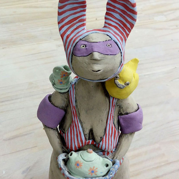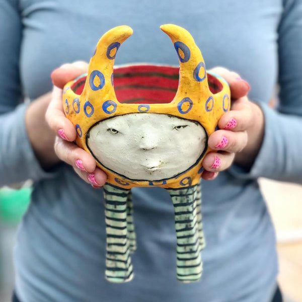 Colorful handmade clay sculptures and dinnerware sets. Shop a collection of distinctive pieces from Lucy Bashan Browne.